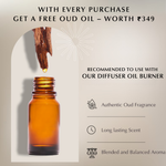 Content: Includes a Wrought Iron Burner, Brass Bowl, Wooden Coaster, Tea Light Candle, and a free 10 ml Oud Diffuser Oil worth ₹349