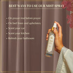 DUKHNI ATTAR AL FARAASH: is quick and convenient to freshen up your home or car. The sprays are ideal for carpets, bed linen, sofa’s, upholstery and prayer mats. They are also good air fresheners, car sprays, kitchen and bathroom freshening sprays