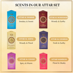 Awaken your senses with the rich and luxurious aromas of Arabia with the Dukhni Adeni Bakhoor & Attar Oils set. This collection includes 1 jar of Adeni Bakhoor (40 grams) and 6 bottles of 6ml Arabic Attar Oils—Nashwan, Al Ghawi, Al Adeni, Al Mukhamar, Al Gharam, and Al Shabab—crafted for a captivating aromatic experience. Perfect for prayer, meditation, or gifting, this set transforms your space into a serene and inviting oasis.