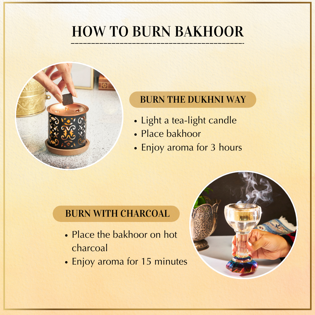 When to Discard: Always discard used piece of bakhoor after burning for 3.5 hours and use a fresh piece for the best experience.