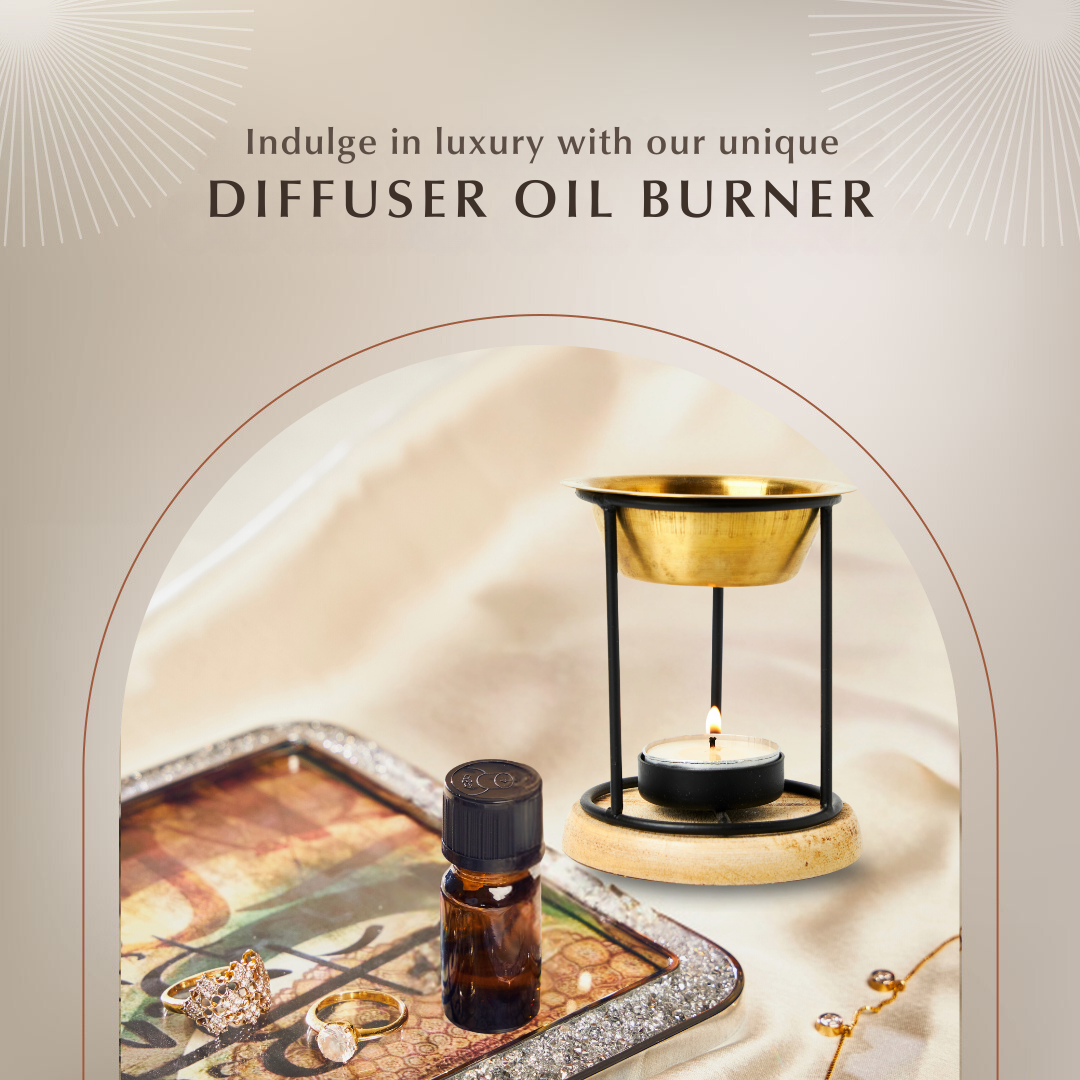 Fill your space with soothing scents using our diffuser oil burner—perfect for essential oils, aroma oils, and diffuser oils. This complete set includes a wrought iron burner, a brass bowl, a wooden coaster, a tea light candle, and a free 10ml Oud Diffuser Oil worth $6.5. Thoughtfully designed and easy to use, it brings effortless aromatherapy into any room.