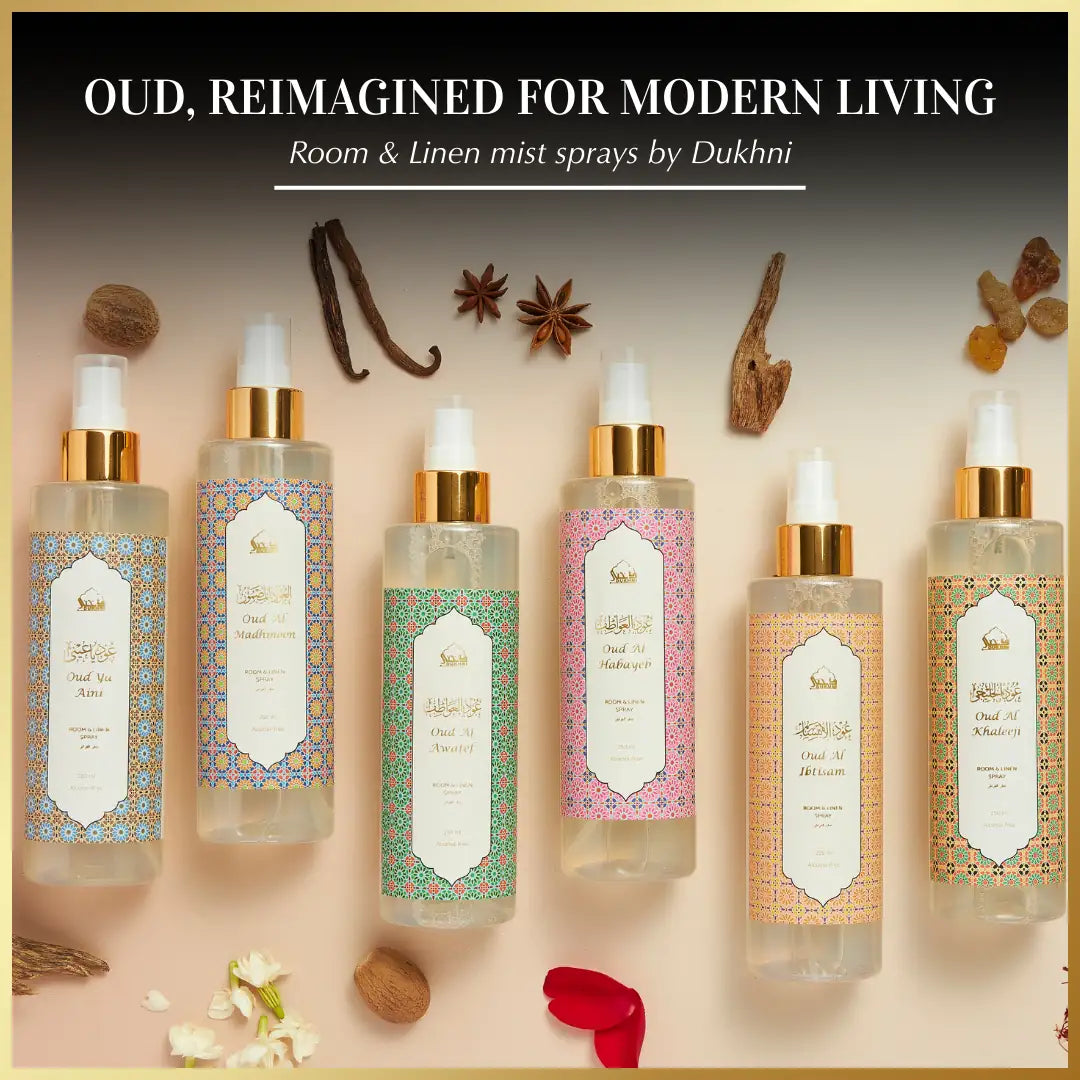 Refresh your space in just 5 minutes with our non-alcoholic oud room and linen spray. This 250ml Mist Spray is perfect for fabrics, furniture, prayer mats, and more—bringing a subtle, luxurious fragrance to your home. Ideal as a room, linen, or car spray, it instantly elevates your surroundings with a gentle and safe aroma.