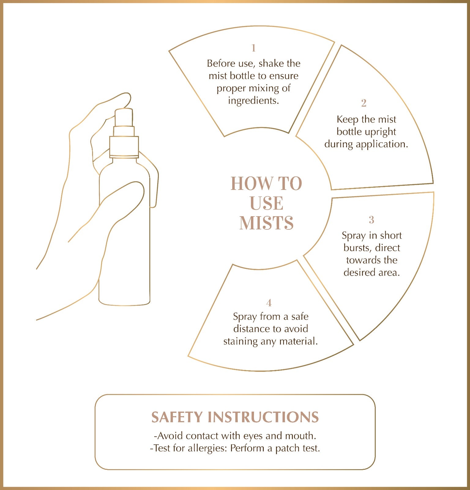 Dukhni room sprays are meant to be used as air fresheners on linen and fabric. Avoid spraying directly on skin or hair.
