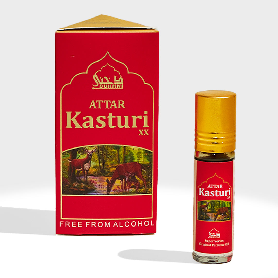 Dukhni Kasturi XX (Black Musk) is a bold, deeply alluring roll-on attar crafted for those who love rich, intense aromas. This alcohol-free perfume oil is highly concentrated, long-lasting, and designed to enchant both men and women. Quantity: 6ml roll-on attar oil (0.2 fl oz).