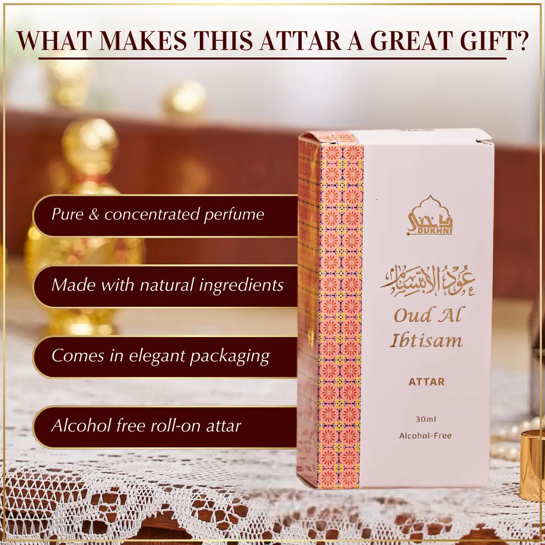 Try Dukhni’s Oud Al Ibtisam Attar—an enchanting, premium floral blend crafted by the finest noses. This highly concentrated Arabic perfume comes in a generous 30ml roll-on bottle and settles beautifully on the skin, staying noticeable for 14+ hours. Long-lasting, elegant, and currently trending for a reason, it’s perfect for everyday wear while offering great value with the 30ml pack.