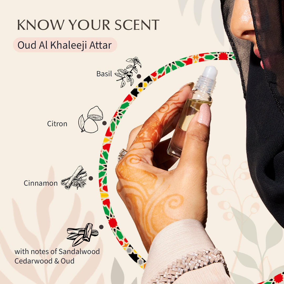 Oud Al Khaleeji عطر العود الخليجي is a premium, alcohol-free roll-on attar oil designed for both men and women. Crafted with pure, vegan ingredients, this concentrated perfume oil offers a long-lasting fragrance that subtly diffuses throughout the day. Perfect for daily wear or special occasions, it evokes sophistication and warmth while making a bold, unforgettable impression.