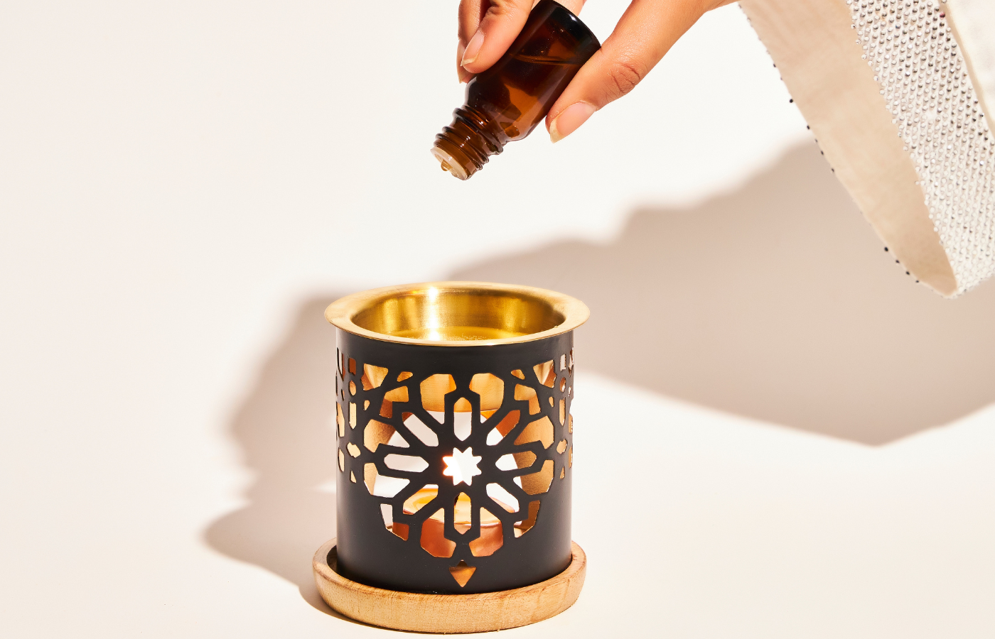 Fill the brass bowl of your burner with water and add 8–10 drops of diffuser oil. Light the candle and let the aroma fill your space. For a more intense fragrance, simply add a few extra drops of oil.
