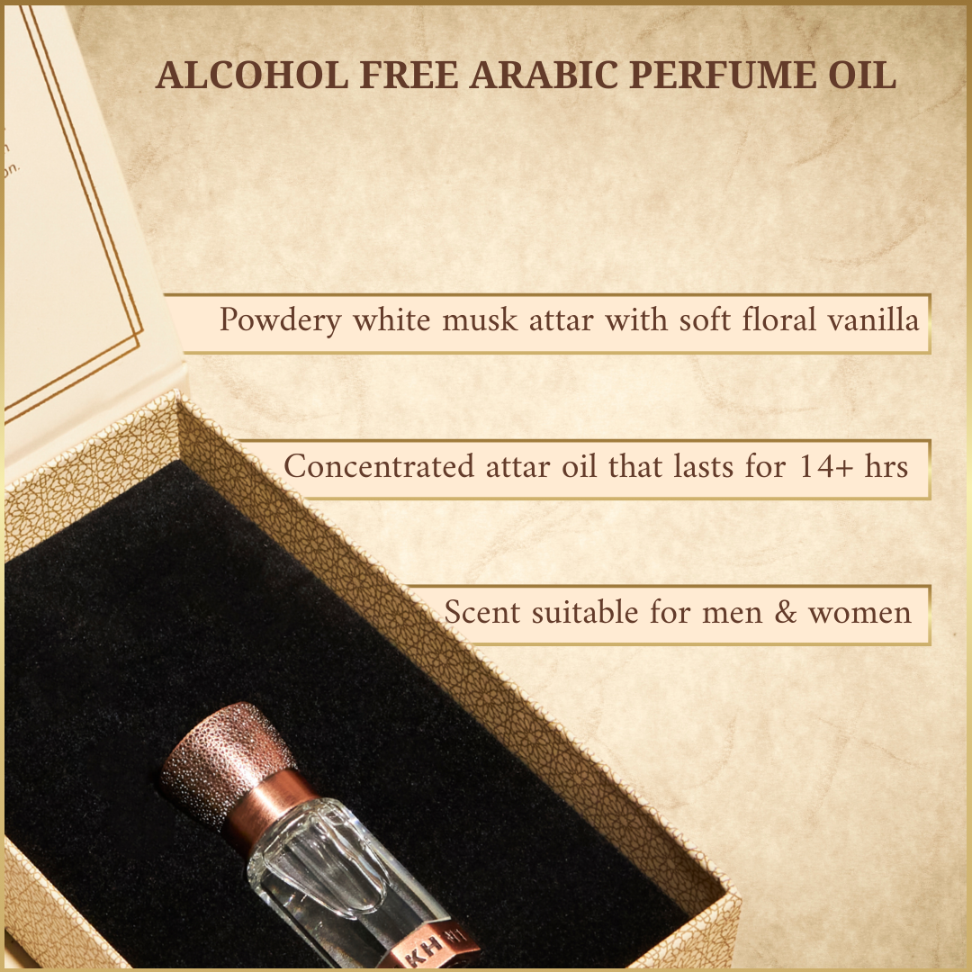 Misk Rijali Attar Oil: If soft, gentle scents are your style, Misk Rijali will feel instantly familiar and soothing. Powdery white musk leads the composition, brightened by floral Lily of the Valley and rounded with a smooth touch of vanilla. Warm, cosy and slightly sweet, it settles beautifully on the skin and suits both men and women.