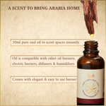Oud Diffuser Oil: Deep, woody oud with sweet balsamic warmth and earthy undertones that fill the space with timeless Arabian character.