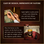 Diffuser Oil: Place the burner on the wooden coaster and set the brass bowl on top. Add water to the bowl with 8–10 drops of oud diffuser oil. Light the tea light below and allow the fragrance to gently diffuse. Add more oil if a stronger scent is desired or for larger spaces.