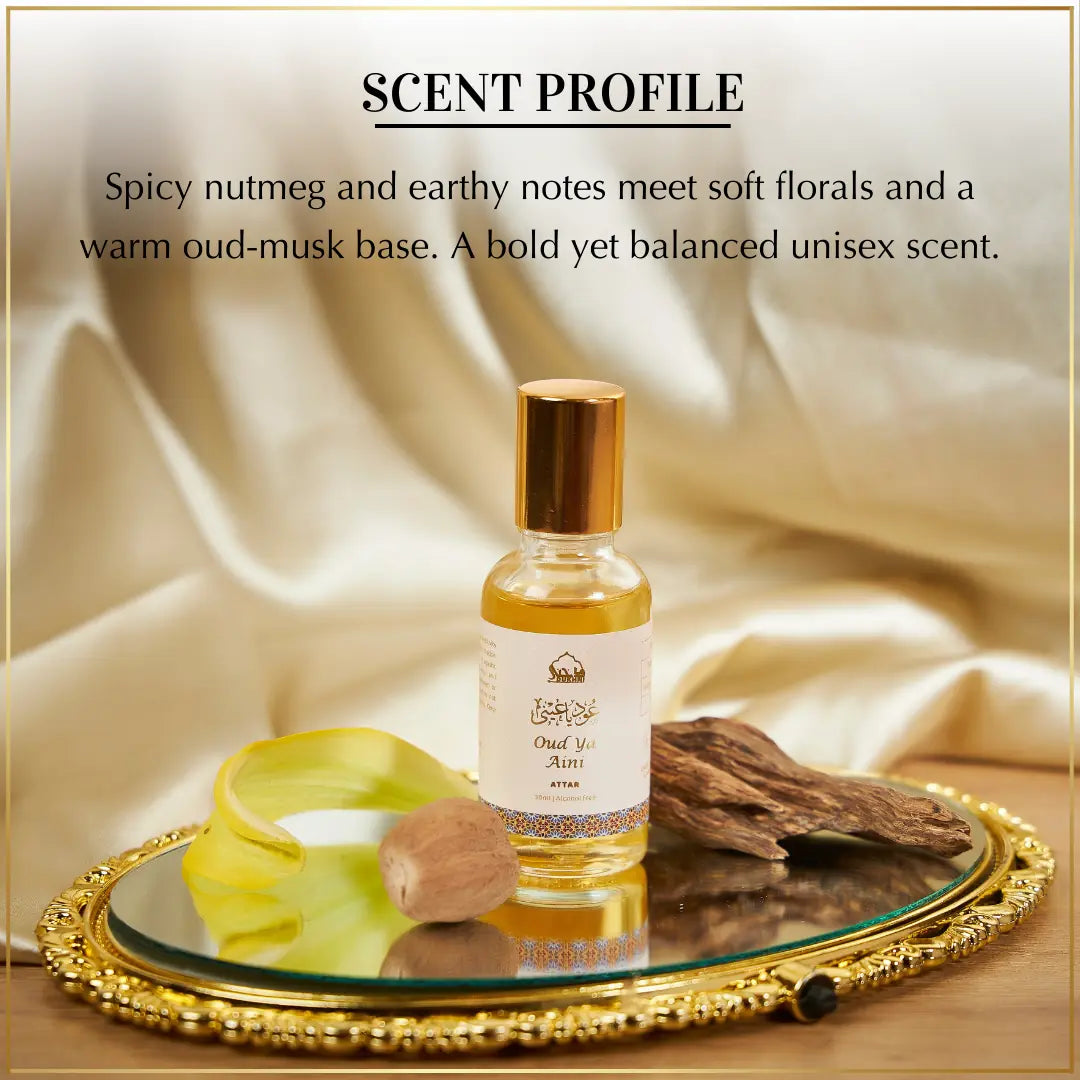Try Dukhni’s 30ml Oud Ya Aini Attar—a woody fragrance crafted by the finest noses. This concentrated roll-on oil is made with premium ingredients, completely alcohol-free, and delivers exceptional longevity lasting over 14 hours on clothes. Pure and expertly blended, it offers a luxurious scent experience that stands out.