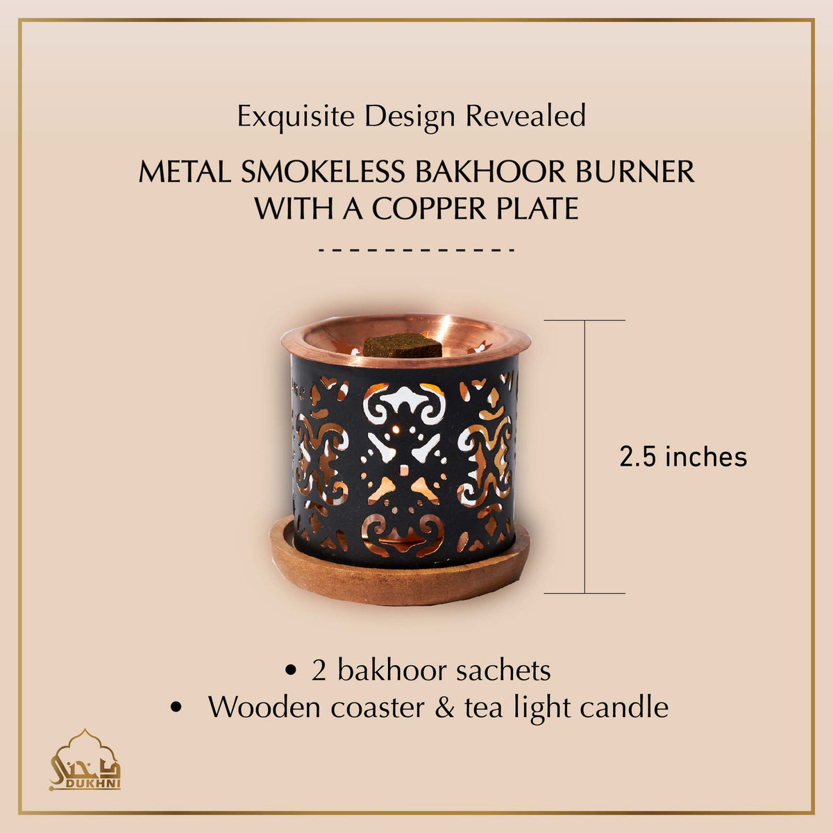 Burn bakhoor easily with just a tea light candle. This smokeless bakhoor burner offers low smoke, slow diffusion, and a clean, non-toxic burn that releases a rich, long-lasting aroma—perfect for daily use and special occasions.