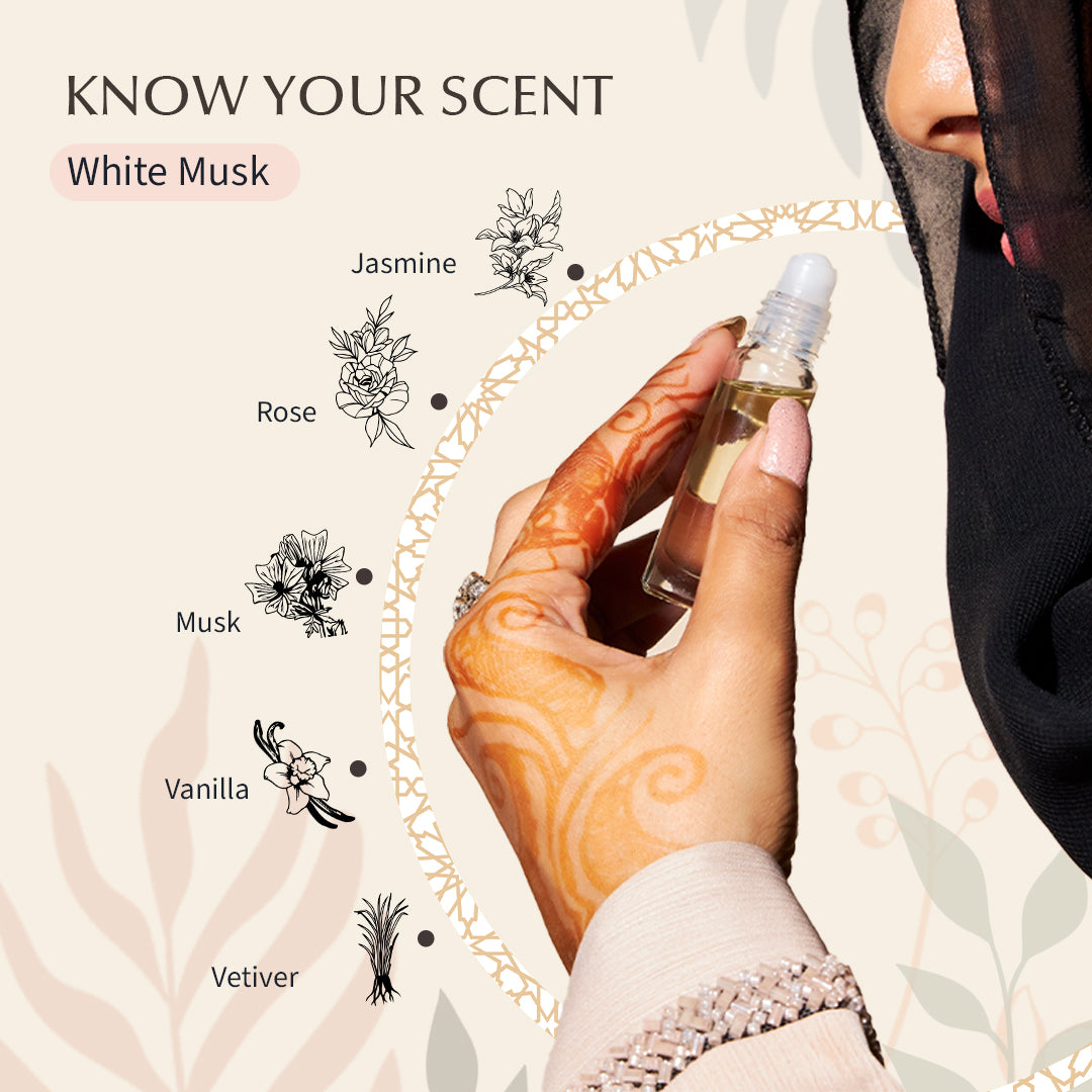White Musk is a premium roll-on attar oil crafted with pure, high-quality ingredients by expert artisanal perfumers. Alcohol-free, vegan, and highly concentrated, this clean unisex attar offers soft diffusion and lasts up to 13–14 hours on clothes.